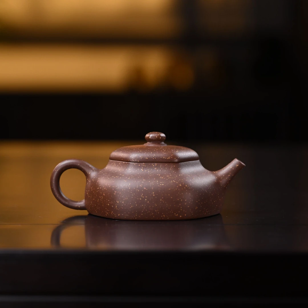 The Liu Fang Jing Le teapot blends geometric elegance with cultural philosophy. Its hexagonal body conveys order, serenity, and inner peace, while its Zi Ni clay ensures smooth and flavorful tea.