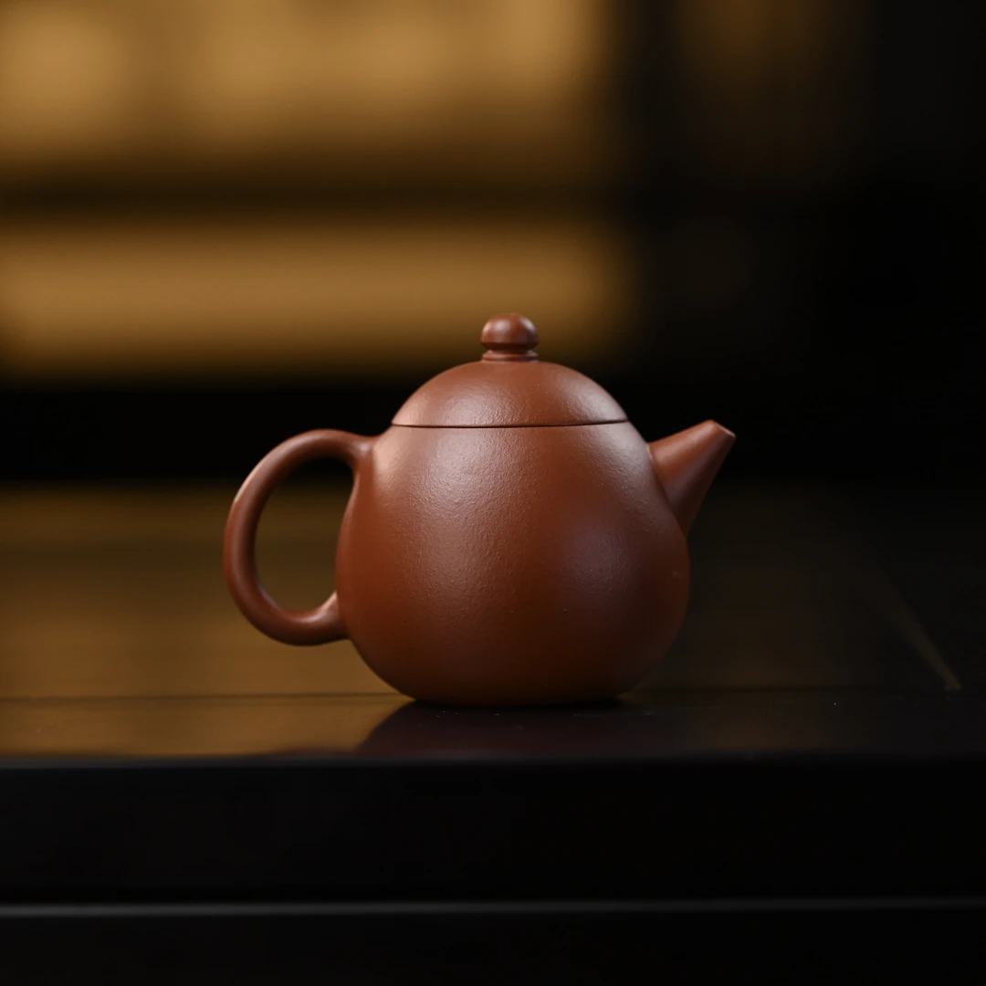 "Long Dan" 150cc Raw Sand Zhu Ni Teapot – Semi-Handmade Yixing Purple Clay Teapot by Artist Zhou Hongzhen – Small Coal Kiln Firing Traditional Teacup